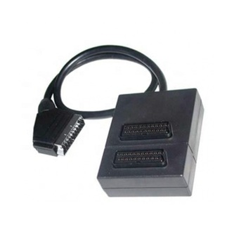 21Pin Scart 3 Way Splitter Black ABS Plastic Short Circuit Protection Male to 2 Female Adapter Connector
